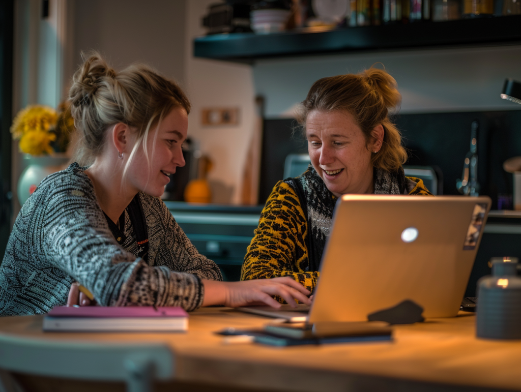 Over huiswerk, over online dingen, over wat je kind maakt of gebruikt.